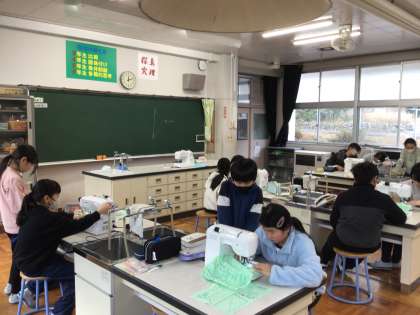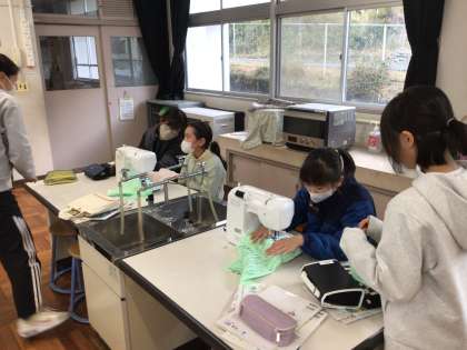 5年生が、家庭科の学習で、初めてミシンを使いました。友だちと声を掛け合いながら、ミシンの仕組みを確認して、縫うことに挑戦しました。とても楽しそうでした。