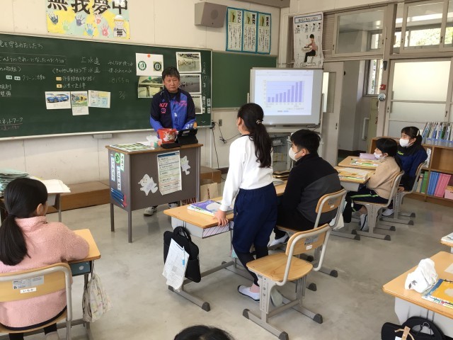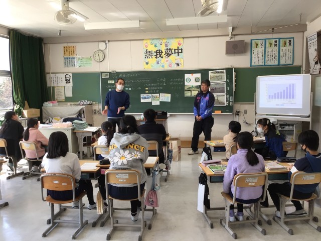5年生の社会科「環境を守るわたしたち」の学習では、京都府の鴨川の環境を守る取組について学びました。西広瀬小学校が、矢作川の水質汚濁調査を行っていることを見つめ直し、地域講師の方をお招きして、調査が始まった当時のお話を聞きました。子どもたちは、自分たちの活動について考え、ふるさとの川がきれいでいてほしいと想いをもちました。