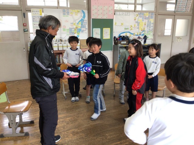 2年生が、1年間お世話になった青木先生に感謝する会を行いました。みんなが作ったおもちゃを紹介して遊んだり、お手紙などを渡したりしました。ありがとうの気持ちが伝わる、あたたかい会になりました。