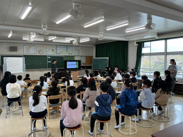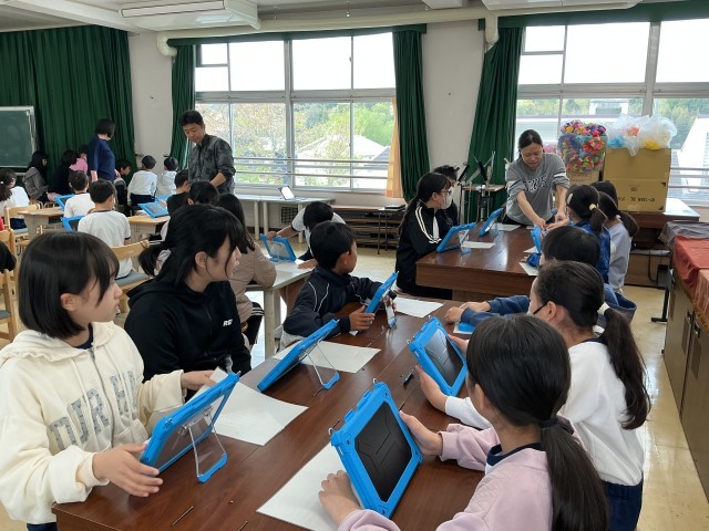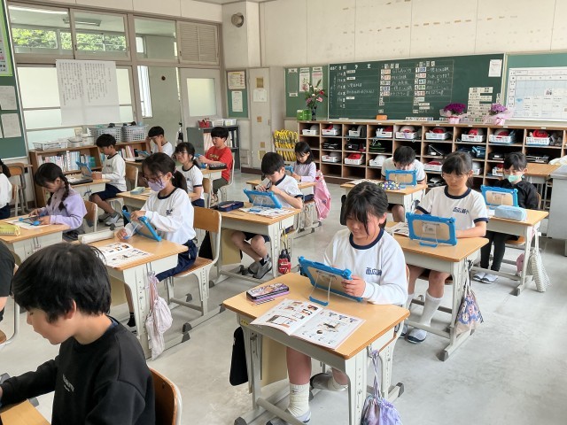 4月13日(月)に、全校GIGA開き集会を行いました。新しい学習用タブレットを代表で受け取った児童が、使うときの心構えやめあて等を発表しました。2~6年生は、みんなで使い方を確認して、意慾的に学習で使っていました。これからは、毎日家庭に持ち帰ります。
