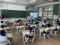 5年生が、算数科「算数のとびら」の学習で、小数の問題を解き、自分の考えをノートにしっかり書いていました。友だちと意見交流をして、小数の加減計算について理解を深めていました。