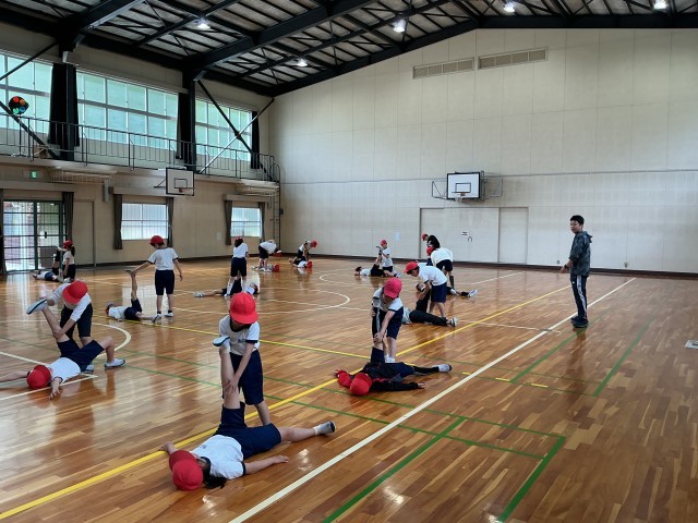 体育館から元気な声が聞こえてきたので行ってみると、3・4年生が、体育科「体ほぐしの運動」に取り組んでいました。とても楽しそうに、体を動かしていました。