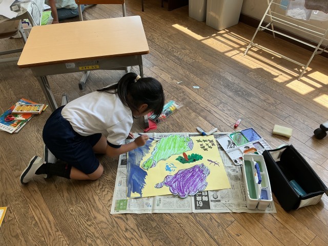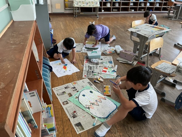 2年生が、図画工作科「ふしぎなたまご」の授業で、たまごをつくりながら、想像したことや表したいことを見付けていました。好きな形や色を選んだり、いろいろな形や色を考えたりしながら、表現していました。