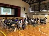 会場の小原交流館に着くと、待機場所のホールに移動しました。館内には提示されている...