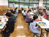食事係の児童が準備を頑張ってくれました。予定より早くいただいています。たっぷり...