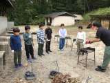 ファミリー広場に移動して五平餅づくりに挑戦しています。午前中は雨の予報でしたが...