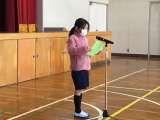 今朝は全校朝の会があり、3名がスピーチを行いました。 持久走記録会で1位を目...