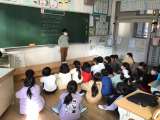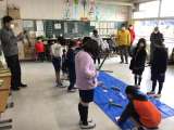 4年生は3年生にゴミの分別を、釣りゲームを通して楽しみながら伝えていました。資...
