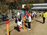 見守り隊の方々に付き添われ、児童は安全に登校しました。日差しが出てきましたので...