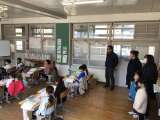 透成こども園から年長児が見学に訪れています。各学年の授業を参観した後は、体育館...