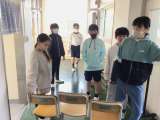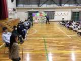 5時間目に卒業式の会場準備を行なっています。体育館に紅白幕をかけたり、お祝いの...