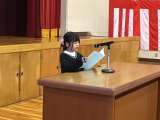 3名の児童が発表しました。 1年生の児童は、大好きなお家の特徴を紹介しました...
