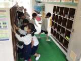 2年生が玄関に集まっていましたので、様子を見ました。下駄箱の靴を整頓していまし...