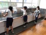 保健室では身体測定が行われていました。今日は中学年の測定です。身長と体重、視力...