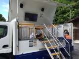 防災指導車を活用した防災学習を行なっています。南海トラフ地震を想定して、震度6強...