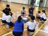 消防署職員の方を講師に招き、5年生が救命講習を受けました。心臓マッサージとAE...