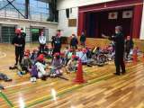 西広瀬小学校に到着しました。教室に入り、帰り支度をしています。お土産にいただい...