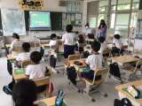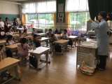 4時間目に栄養教諭による食育の授業を行いました。児童たちのもとに給食が届くまで...