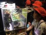 ウーパールーパーや大型の淡水魚に児童は目を輝かせています。