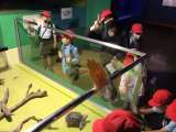 地球が誕生した46億年前から1億年前までの展示コーナーを見学しています。児童は...
