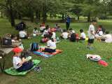 水族館を出て、班で決めた昼食場所に向かいました。多くの班は芝生広場を選んだよう...