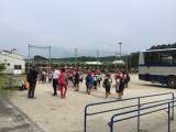 予定よりも早く到着しました。帰りのバスでは熟睡している児童もいました。曇り空で...
