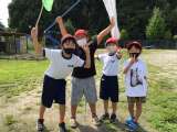 掃除後の休憩時間に虫取りに来た1年生です。カマキリとバッタを探していました。運動...