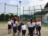 運動場で走り幅跳びと投げる練習をしていました。曇り空でしたが、まだまだ気温は高く...