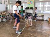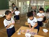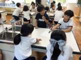 6年生が水質汚濁調査で毎朝実施しているパックテストの実験を、2年生に説明し一緒...
