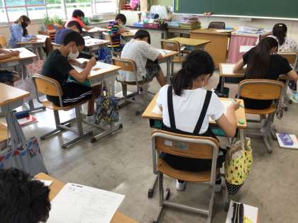 夏休みが終わり、学校に子どもたちの笑顔が戻ってきました。久しぶりの教室で、楽しく、真剣に学習しました。