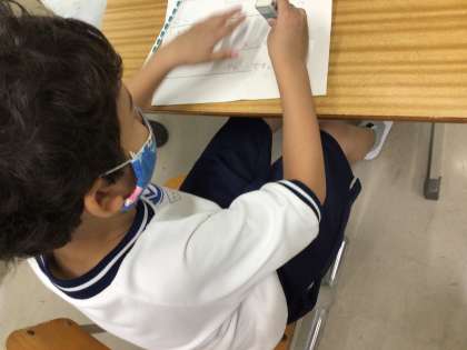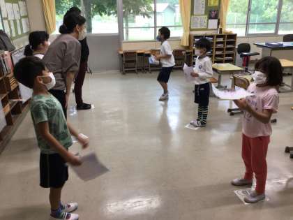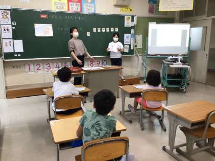 夏休みの思い出を発表しました。感想を、友達や先生と伝え合ったり、プリントに日本語で書いたりしました。