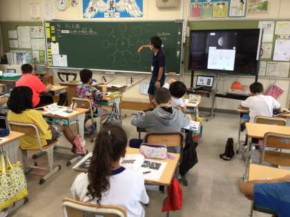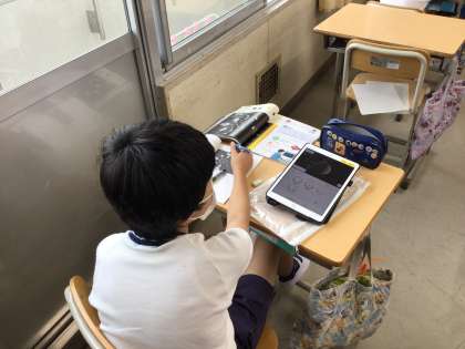 学習用タブレットで月と太陽の動きを確かめながら、月の形とその変化について勉強しました。