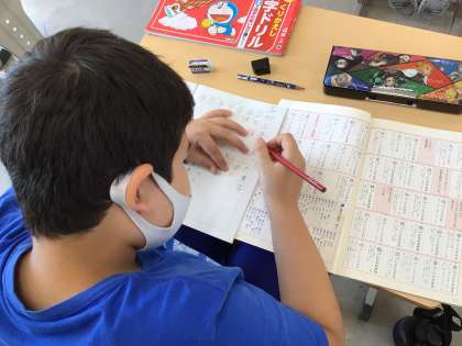 漢字の練習をがんばりました。間違えた漢字は、赤鉛筆できちんと直しました。新しい漢字は、空中に書いて書き順を確かめました。