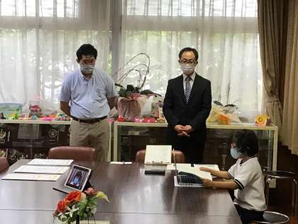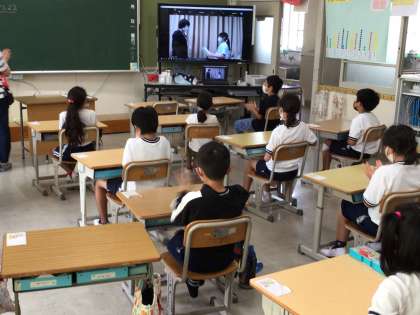 オンラインで前期の終業式を行いました。4月から成長したことを振り返り、後期にがんばりたいことを確認しました。教室では、代表児童の発表や校長先生のお話を画面を見ながらしっかりと聴いていました。