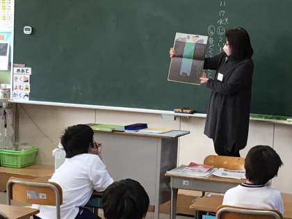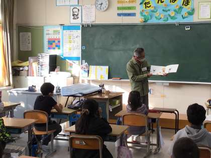 ボランティアさんによる読み語りがありました。季節に合った絵本を読んでいただきました。教室では、食い入るように絵本を見つめる様子がみられました。