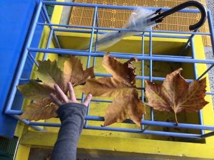 昇降口に大きな葉っぱが置いてありました。