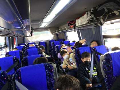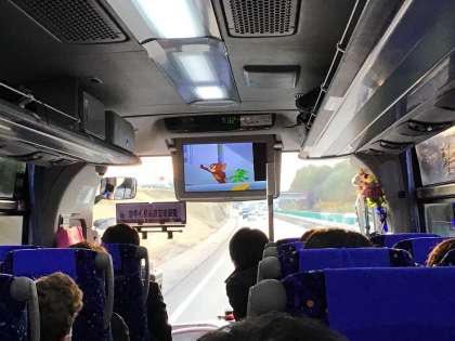 バスの中はビデオを見ながら静かに過ごしています!