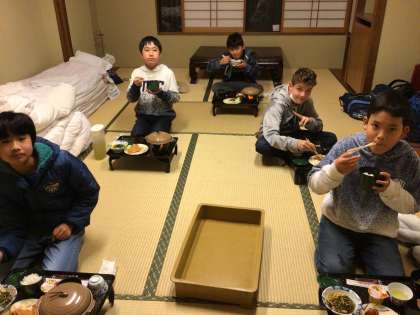 本日宿泊する旅館に無事到着し、夕食を食べています!
