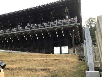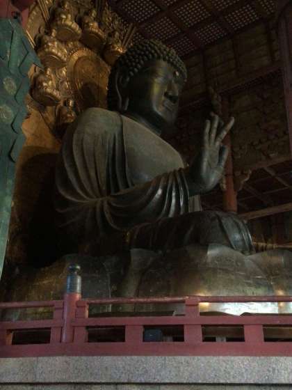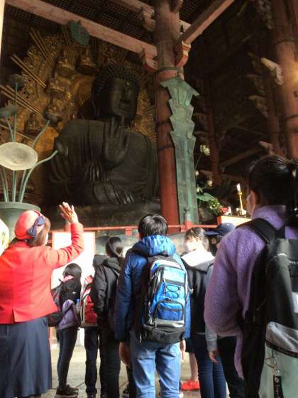 大きな大仏を目の前にして、「うわぁ、大きい!」「どうやって造ったのかな?」と興味津々の子どもたち!ガイドさんの説明もしっかり聞いて学習しました!