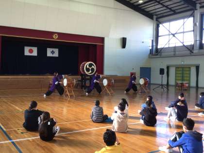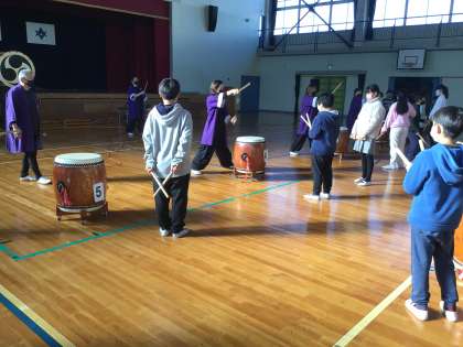 早川流の和太鼓の講師さんを招いて、和太鼓の演奏を聴いたり、実際に演奏したりして日本の楽器に親しみました。