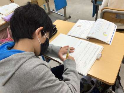 新しい漢字の練習と作文作りに取り組みました。自分の考えたことを進んで書いたり、発表したりできる子が多いです。