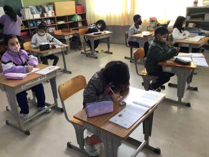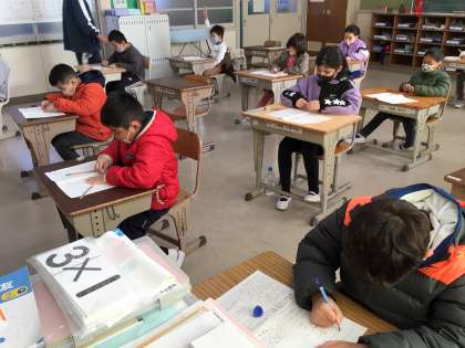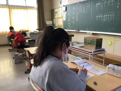 国語のテストに向けて、漢字の練習をがんばりました。黒板のお手本を見ながら、一つでも多く覚えようと丁寧に書きました。
