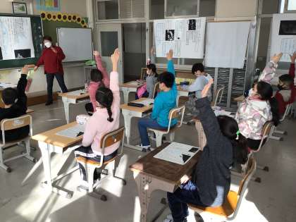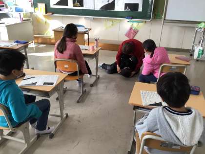 「モチモチの木」の読み取りをしました。学校日本語指導員のアドバイスを聞いたり、先生と劇をしたりして、登場人物の気持ちを考えました。発言がとても多かったです。