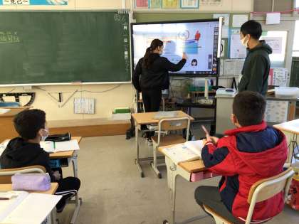 図をかいて割合を調べ、問題を解く勉強をしました。電子黒板を使って発表したり、板書をきちんとノートに写したり、真剣に学習する姿が6年生らしかったです。オンラインで参加した子も発言をがんばりました。