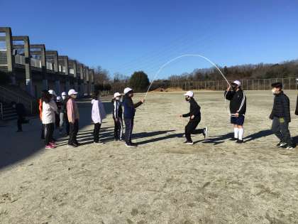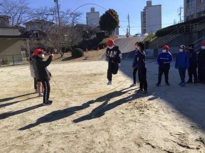 8の字跳びは、全員得意なので、逆8の字や回転跳びに挑戦しています。昨日からは、ダブルダッチに挑戦中です。2本の縄を回すこと跳ぶことも難しいですが、できた時の喜びは、格別です。