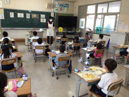 小学校でのはじめての給食。