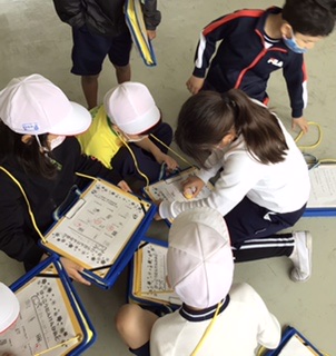 最後に1年生のカードにスタンプを押してから移動です。