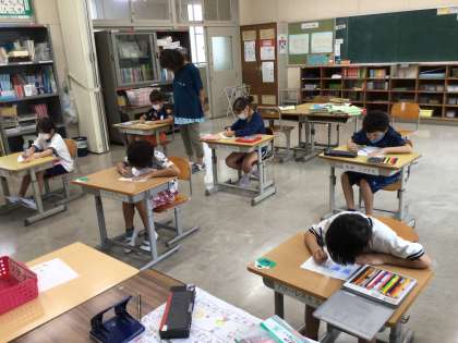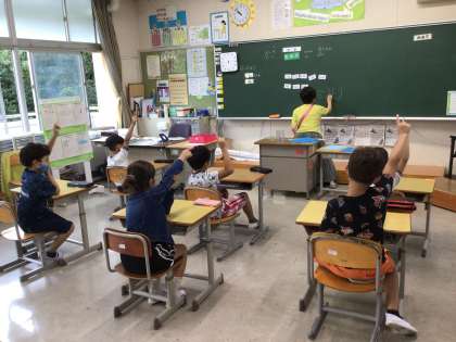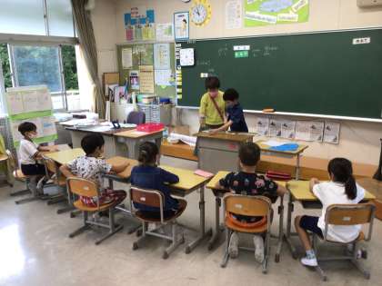 「かさ」の学習をしました。実際に色水をますに注ぎながら、ペットボトルに何dl入っているかを調べました。全員が意欲的に学習活動に取り組みました。