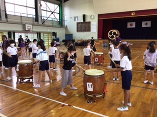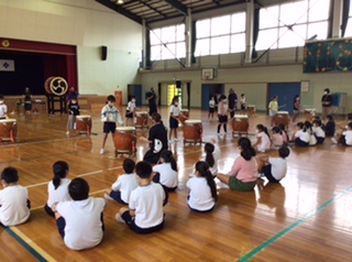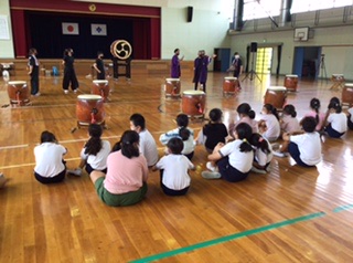 迫力のある和太鼓演奏に、3年生はみんな興味津々でした。音楽に合わせて上手に太鼓を叩くことができました。終わった後は、みんな笑顔で感想を言い合っていました。