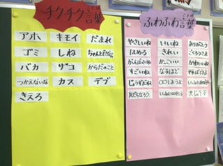 今日は人権について考えました。以前に話し合ったチクチク言葉やふわふわ言葉を確認しました。また「人が嫌がることをしたり、傷つけることをしたりすることは、いけない」と自分の意見を堂々と発表する姿がありました。